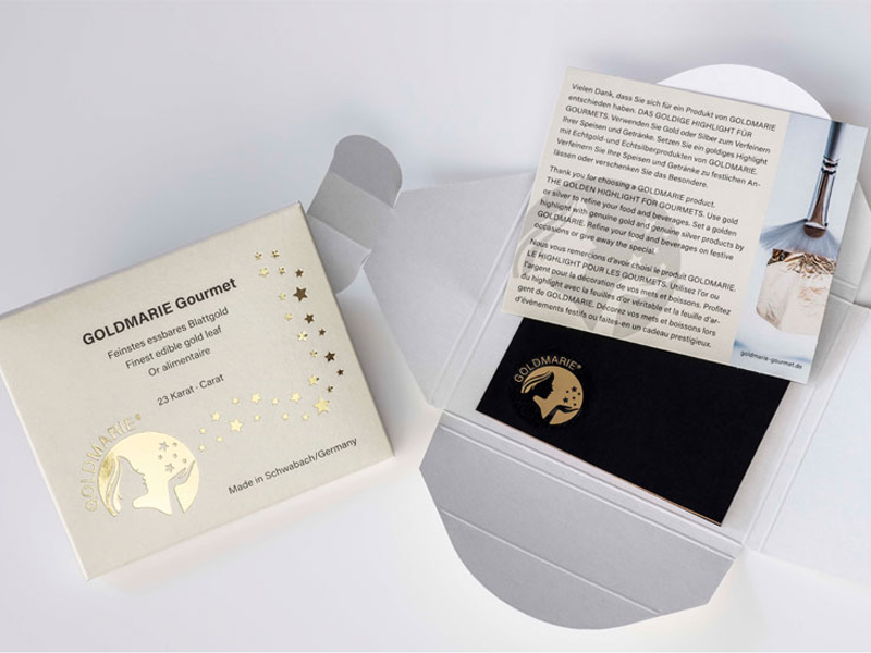 De velletjes bladgoud geven een briljant en sprankelend effect aan elk gerecht.