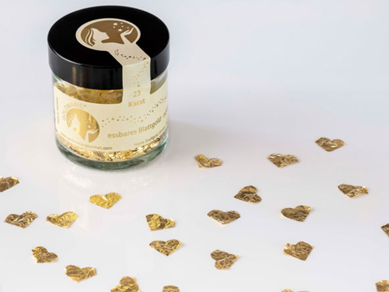Maak een schitterende blikvanger met de echte gouden producten van Goldmarie. Verfijn uw gerechten en dranken op feestelijke momenten of geef dit bijzondere product cadeau.