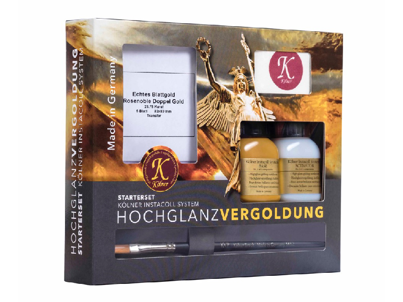 Starterset voor het vergulden met bladgoud met het Kölner Instacoll systeem.
