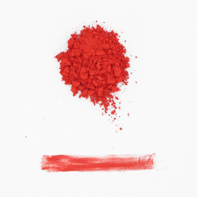 Oudheid. Gestookt uit kwikerts. Helder vuurrood. Toepasbaar voor olieverf, caseïneverf, lijmverf, kalkverf en spiritusvernis. Heeft een goede dekkracht.