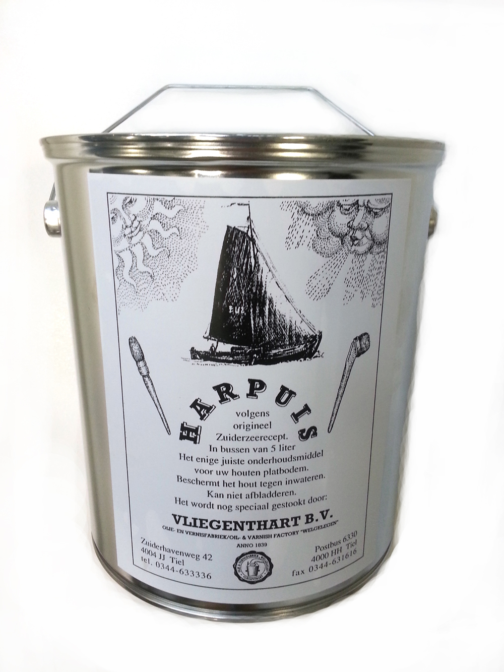 Harpuis is een door de eeuwen heen beproefd middel om hout werkelijk lang goed te houden. Onze harpuis wordt vervaardigd volgens een oud procédé van zuiver natuurlijke grondstoffen, zoals het destijds gemaakt werd in de havens rond de Zuiderzee.